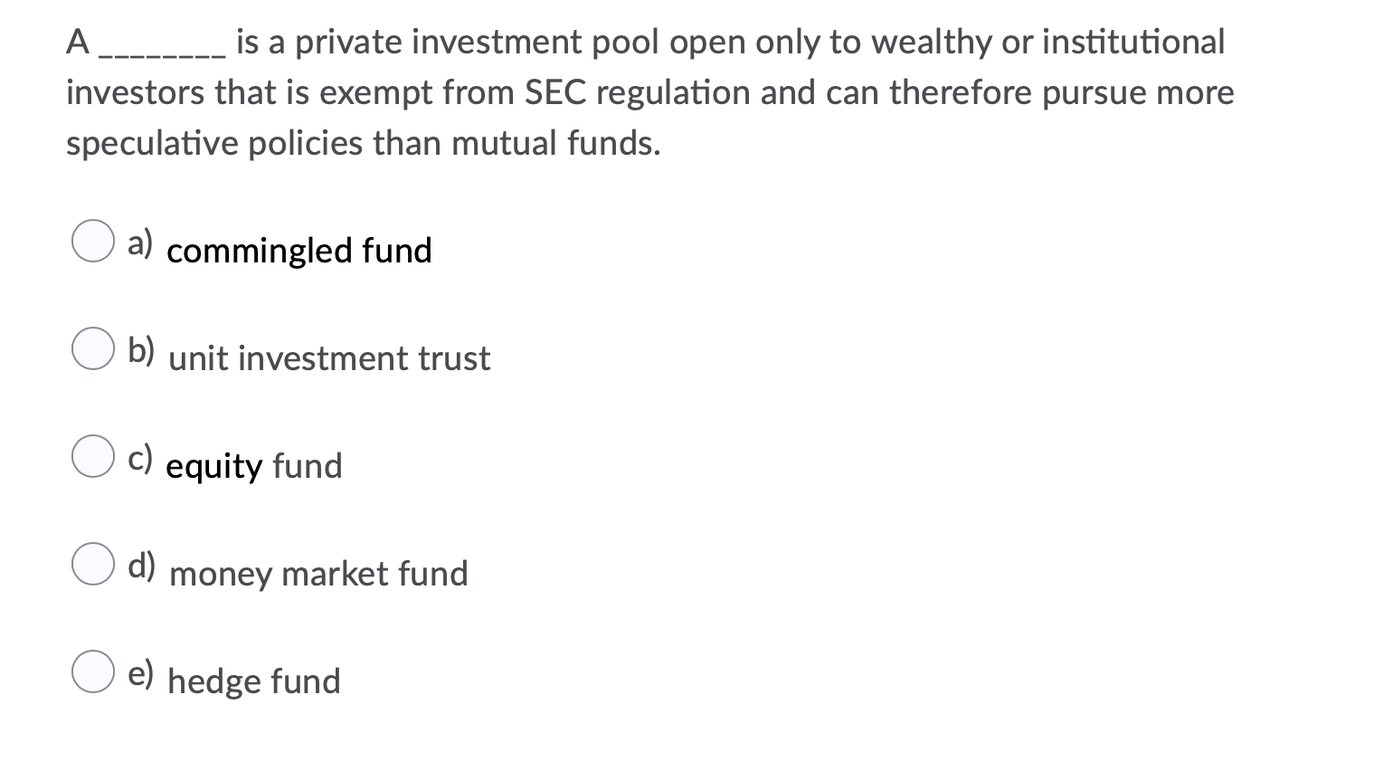 Fin Chapter 4 1 A Is A Private Investment Pool Open Only To Wealthy Or Institutional Studocu